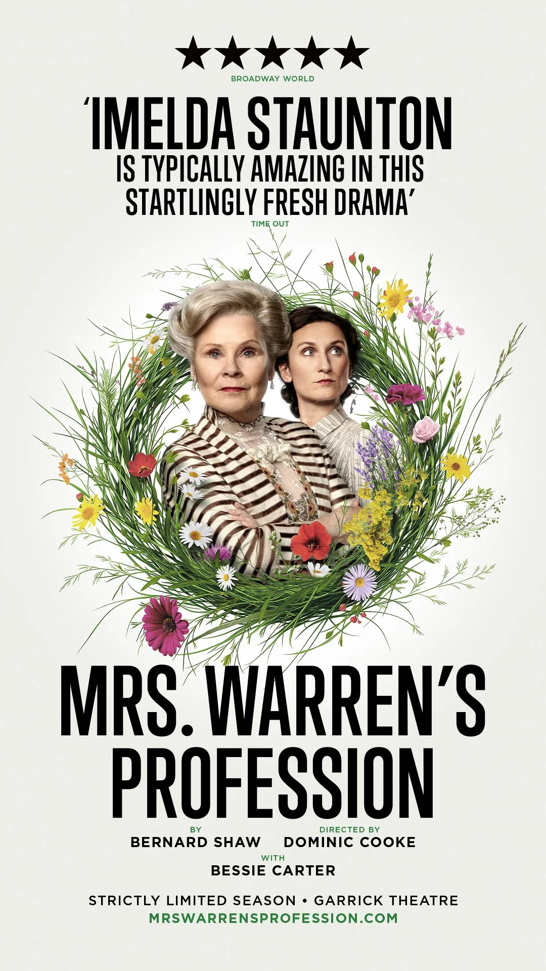 Mrs. Warren's Profession in London stars real-life mother and daughter, four-time Olivier Award-winner Imelda Staunton (The Crown) and Bessie Carter (Bridgerton). Joining them to complete the cast are Kevin Doyle, Robert Glenister, Reuben Joseph and Sid Sagar.
